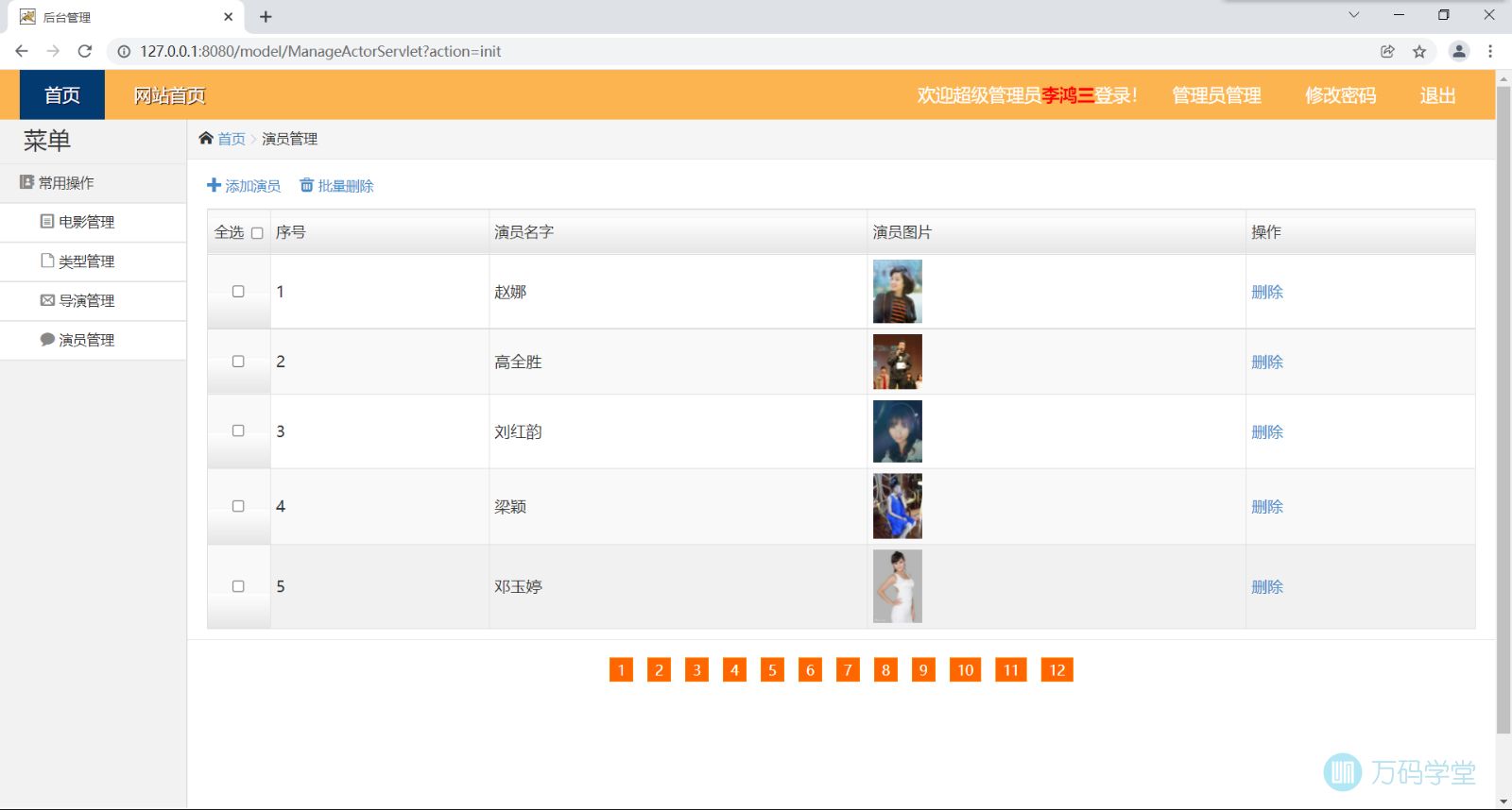 7、后台可对电影进行管理,包括导演和演员的增删改查