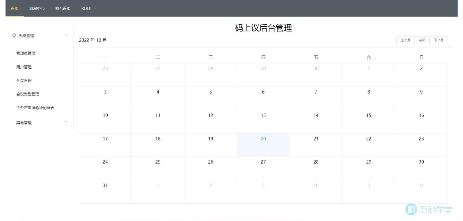 系统管理:包括用户管理,会议管理,会议类型管理,主办方申请验证记录表的管理,其他管理。