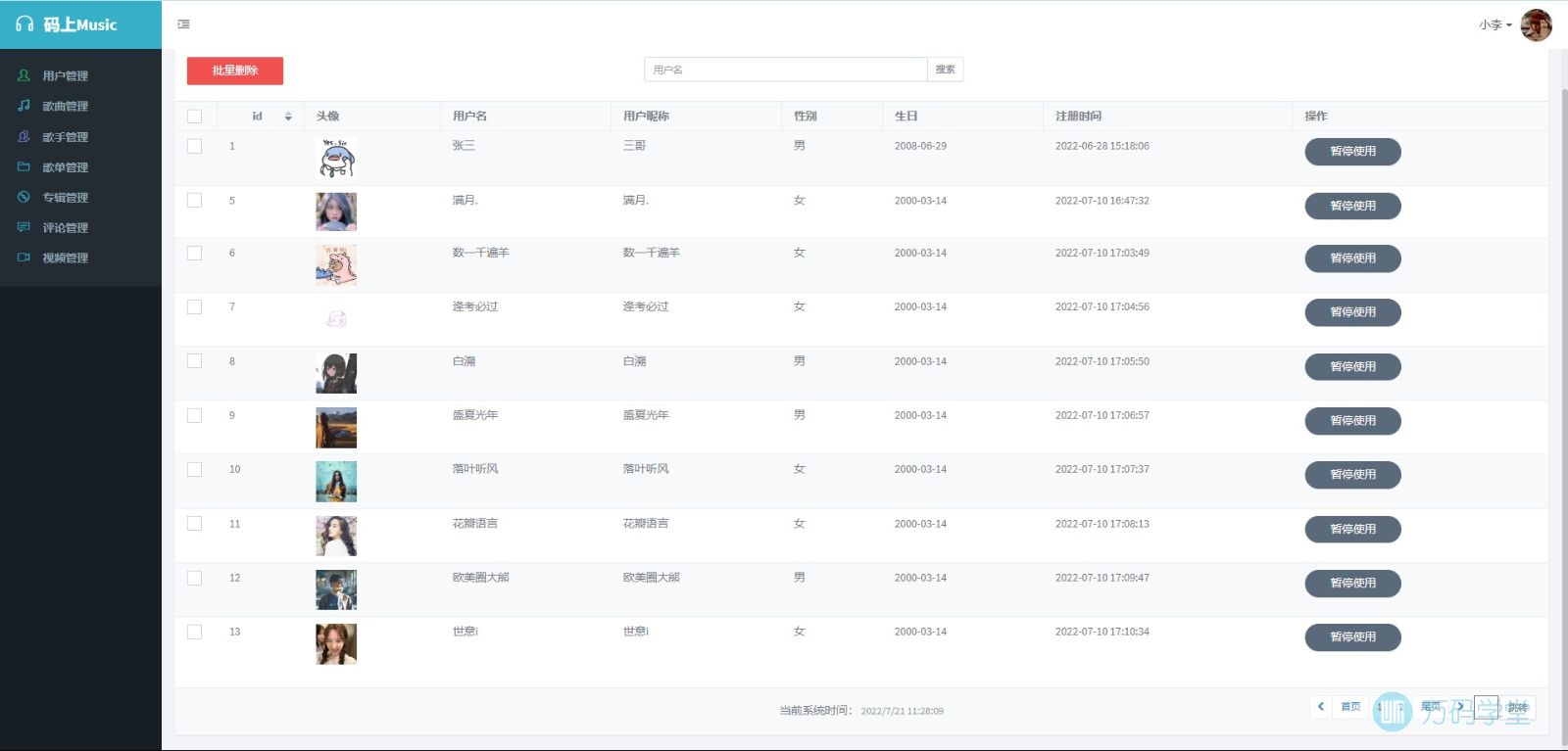可以对歌曲进行停用,修改,增加,查询等功能。