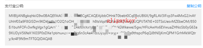 private String alipayPublicKey="MIIBIjANBgkqhkiG9w0*******AQEAjibbOHnkT0bebt0CqEBoUB6X/9gRLAV3lFcp3Fw4MxG2JnAYUhhf03a9F8GISDm9KD4jpth//O2Q1oOHK300W5JHJh8tsVqsf8QParA0K0VwgdUQPIJTATtE+03TSsUesvMZEbeOM/850Ei1buhFOFv3wfkgVgx1gQArYMenrMxpB2Akf8VXxYjEwB//4Y7uajQkAGWkeweJ5gw/HFIcAwHx6EVwuaZHNoSb0yG63a9XUDyV56feX1K03P0sDXe1p6HuRzY+f3Rjg6n3cAe41dJDySy0+tFyj+xO5hDa9thspcP6qQi8tN0jKmQPM1GrhMkWQtry/kr4F9N9mTFTGQIDAQAB";