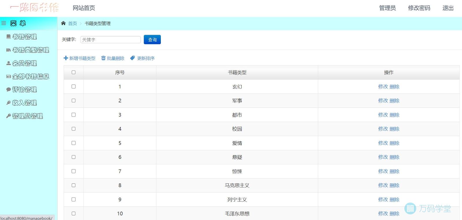 (5)新增书籍类型页面
