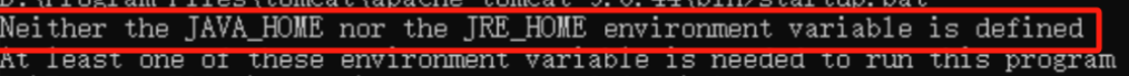 即:既没有定义JAVA_HOME,也没有定义JRE_HOME环境变量,运行此程序至少需要这些环境变量中的一个。