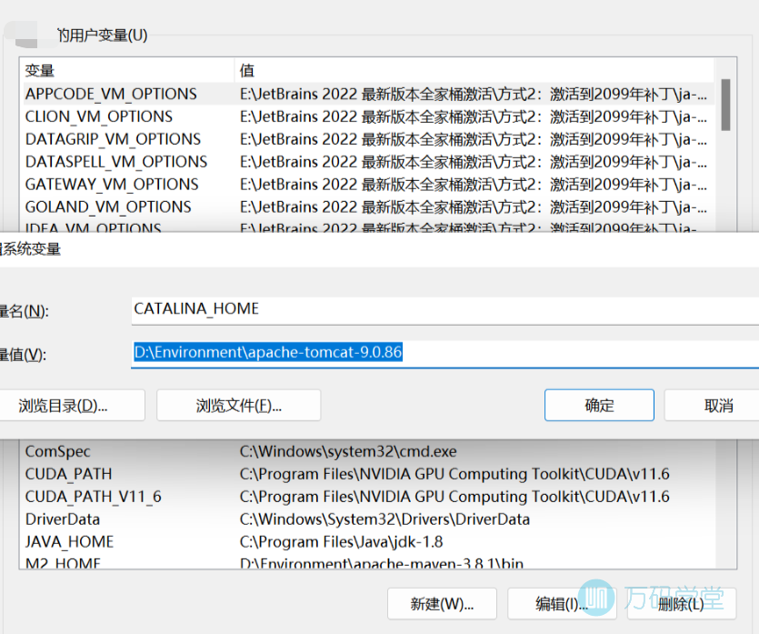1、新建变量名:CATALINA_HOME,变量值:D:\Environment\apache-tomcat-9.0.86