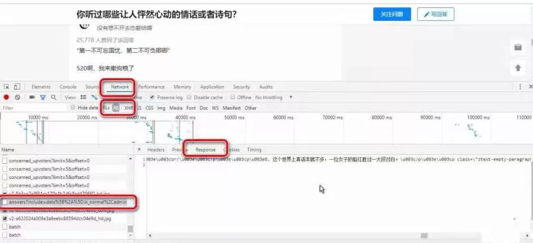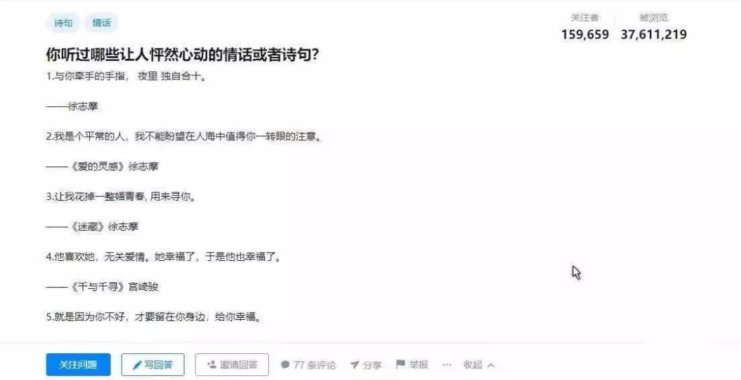 以话题【你听过哪些让人怦然心动的情话或者诗句?】为例,爬取该话题下质量最高的前 100 个回答。